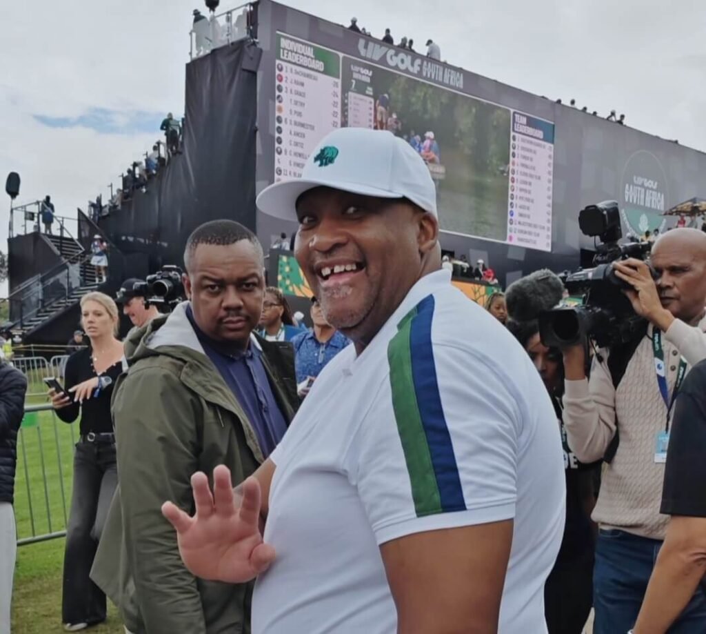 Minister of Sport, Arts and Culture Gayton McKenzie interacts with fans and media near the grandstand at The Club at Steyn City during LIV Golf South Africa, highlighting the event’s high-profile atmosphere and broad public engagement. PHOTO: NOWinSA.